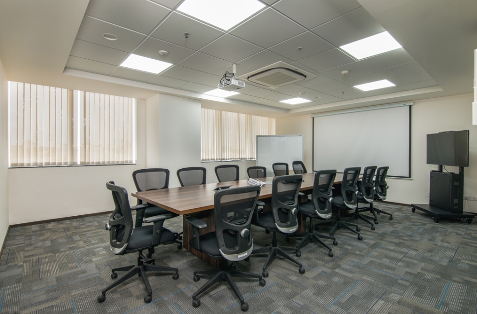 The conference room is a formal space wherein presentations and meetings can be done comfortably. The room is furnished with ergonomic chairs and long desks that aids in productivity and efficiency of the organization.
