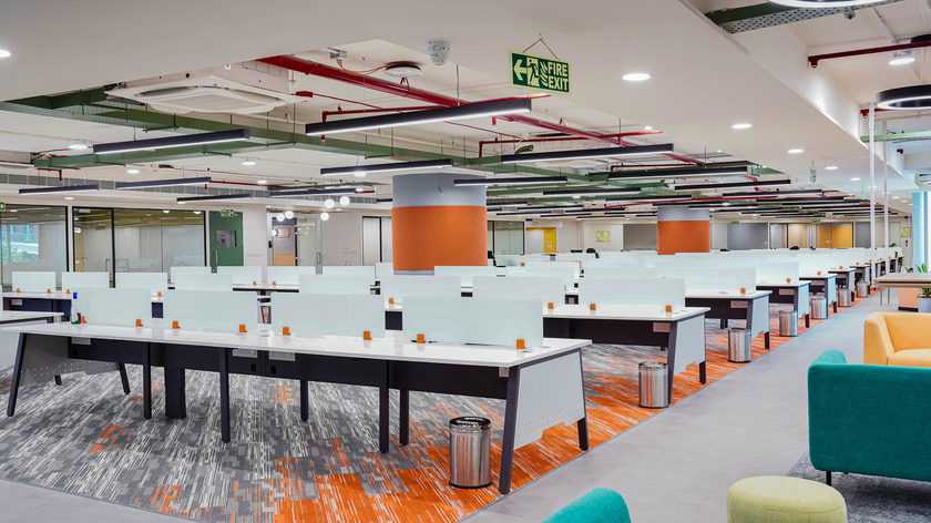 Moneyview's interior is a vibrant and colorful space that spans over 40,000 square feet. The design is modern and playful, with bright colors and unique patterns used throughout. The office is filled with natural light and features a variety of collaborative spaces, such as meeting rooms, breakout areas, and open-plan workspaces. The overall atmosphere is fun and energetic, reflecting the company's culture of innovation and creativity.