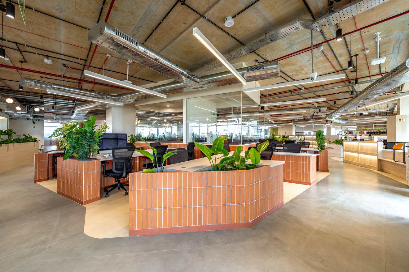 This workplace is a pioneering example of biophilic design, integrating lush greenery seamlessly into every workstation. This innovative approach creates a serene and productive environment that fosters employee well-being and enhances overall workplace satisfaction. By connecting occupants with nature, the design contributes to improved air quality, reduced stress levels, and increased creativity.